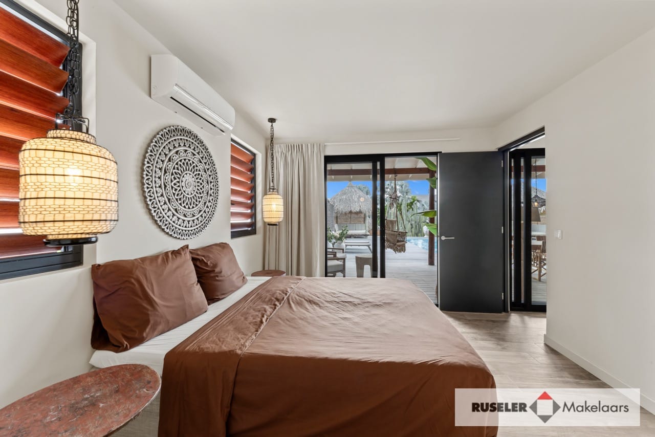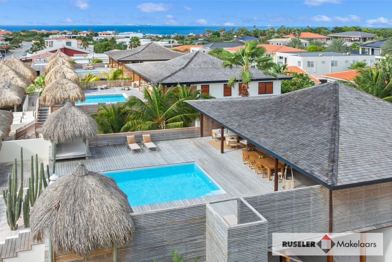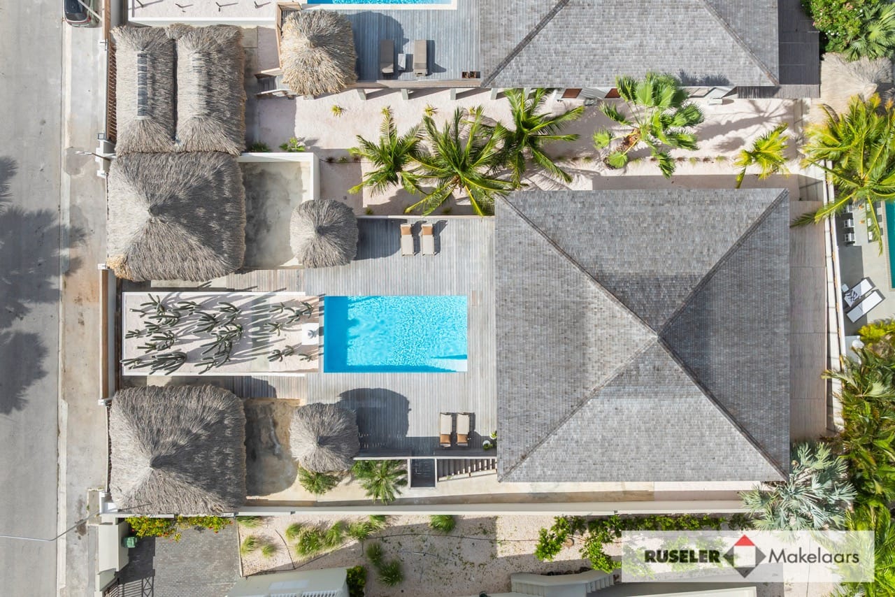 Buiten geniet je van het beste van tropisch buitenleven: een houten pooldeck, zwembad, overdekte porch en twee gezellige cazebos aan het zwembad. Perfect om te chillen in de schaduw of ontspannen in de zon.
